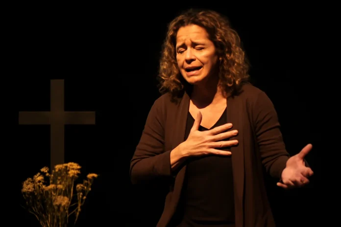 O monólogo, meticulosamente elaborado, utiliza o conceito de ‘mise-en-scène’ para criar um ambiente cativante que envolve o espectador desde o início. A atriz conduz cada cena com uma narrativa poética, explorando em profundidade os desafios e aprendizados que o luto impõe.